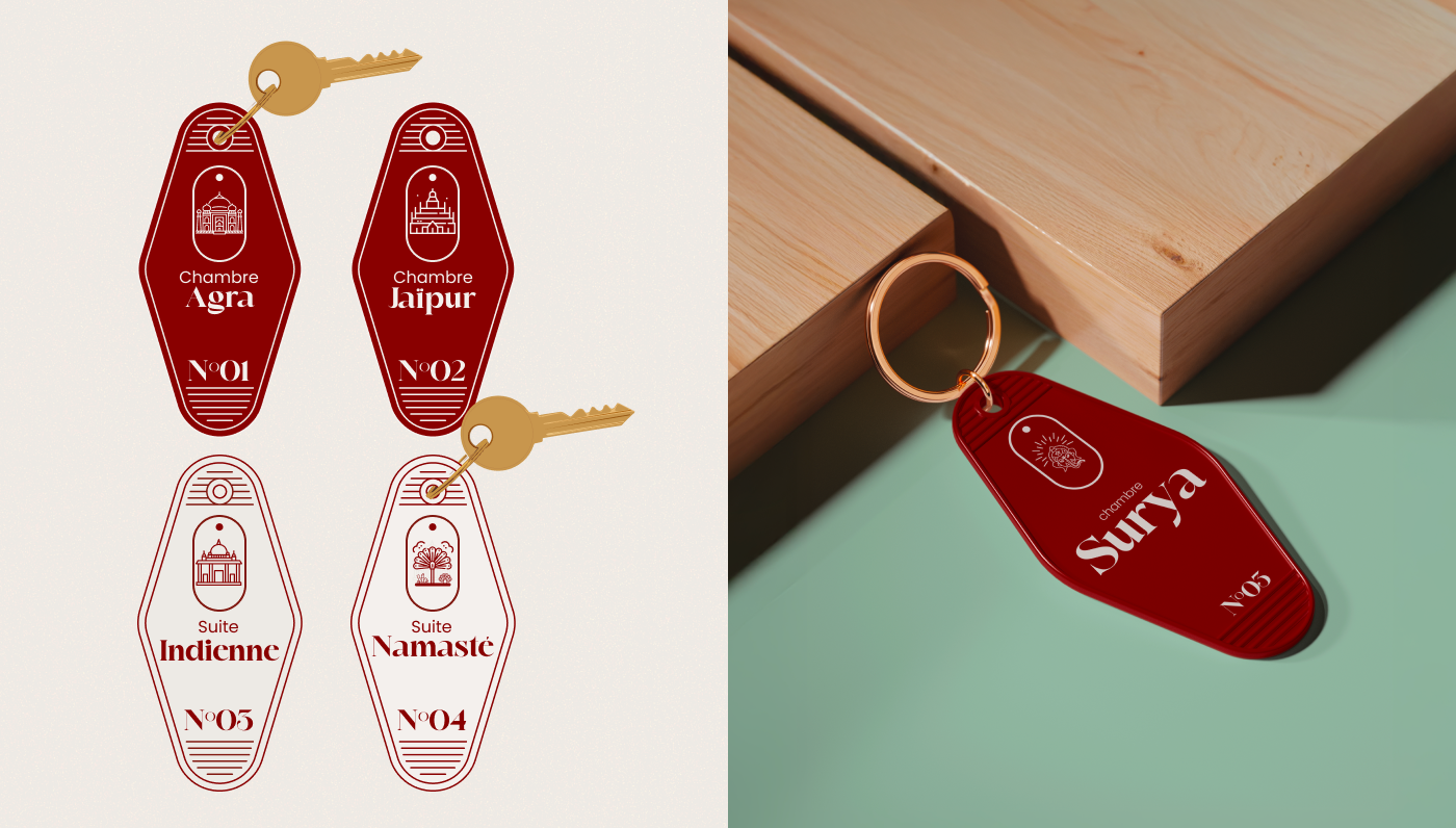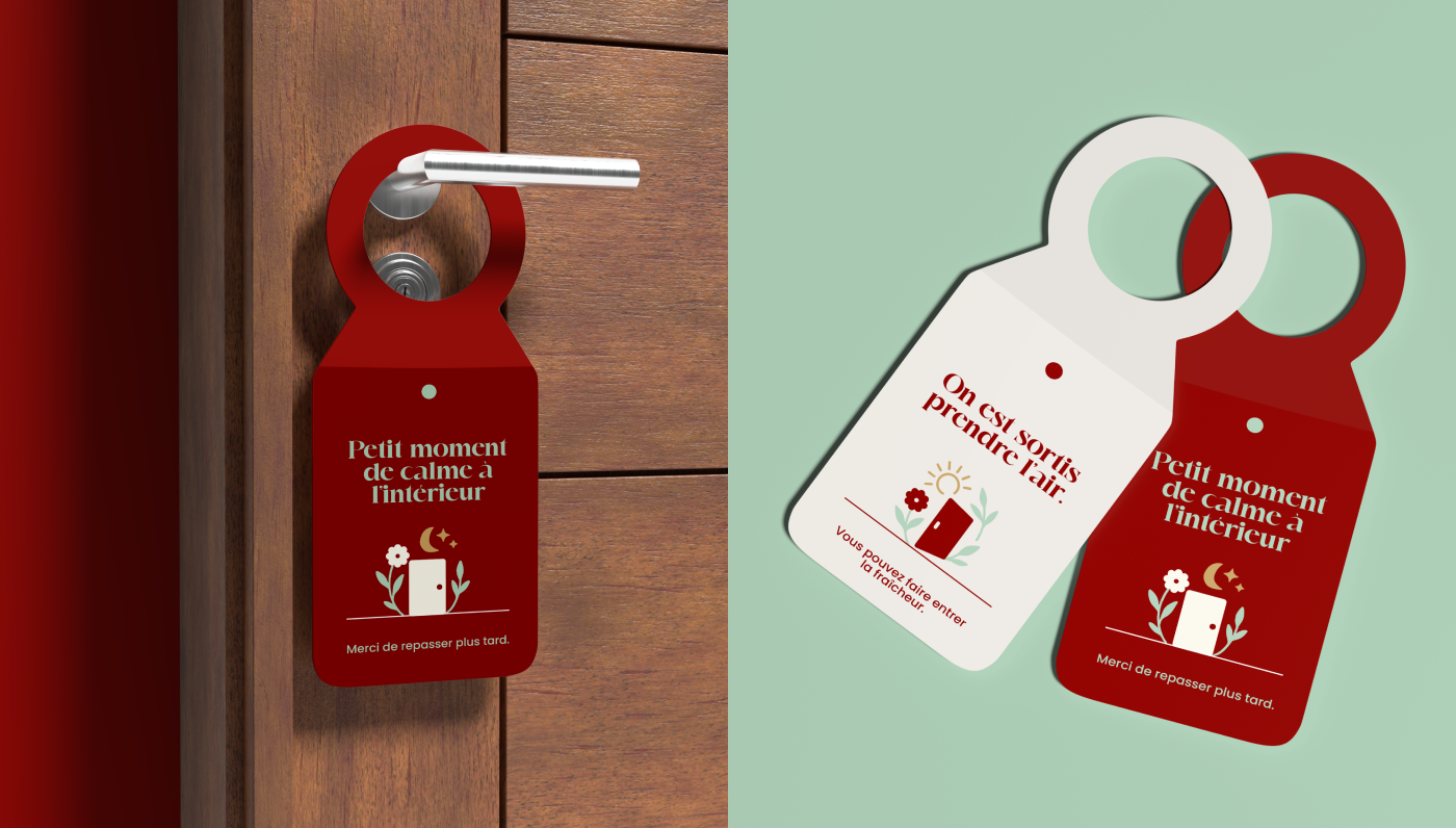 L’univers graphique mêle formes vectorielles organiques, couleurs naturelles et contrastées, et une typographie affirmée, pour refléter l’harmonie, l’expérience sensorielle et l’hébergement contemporain.
