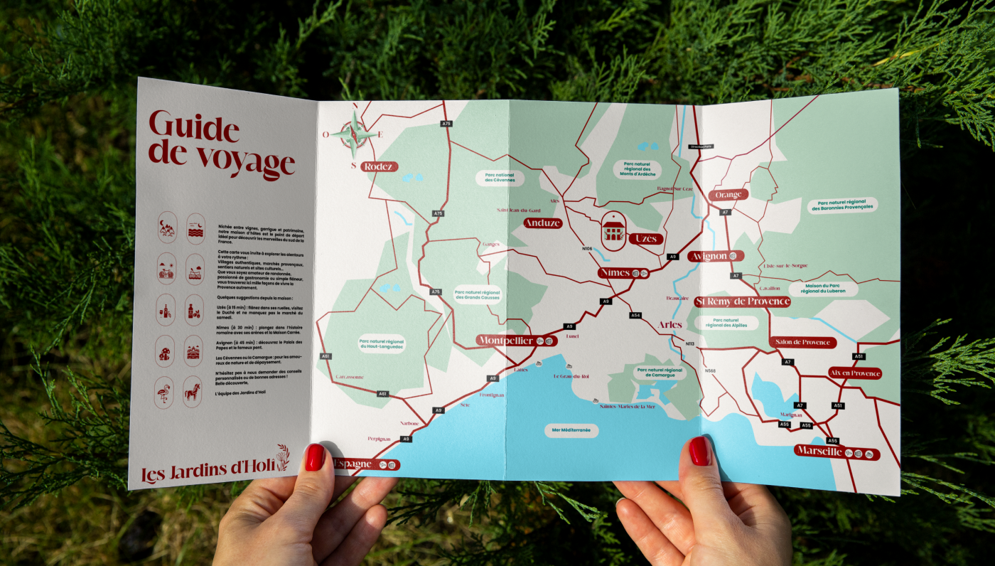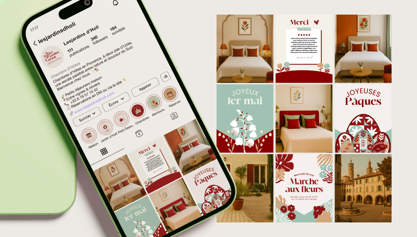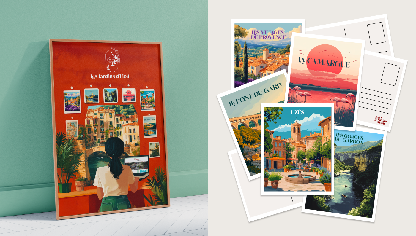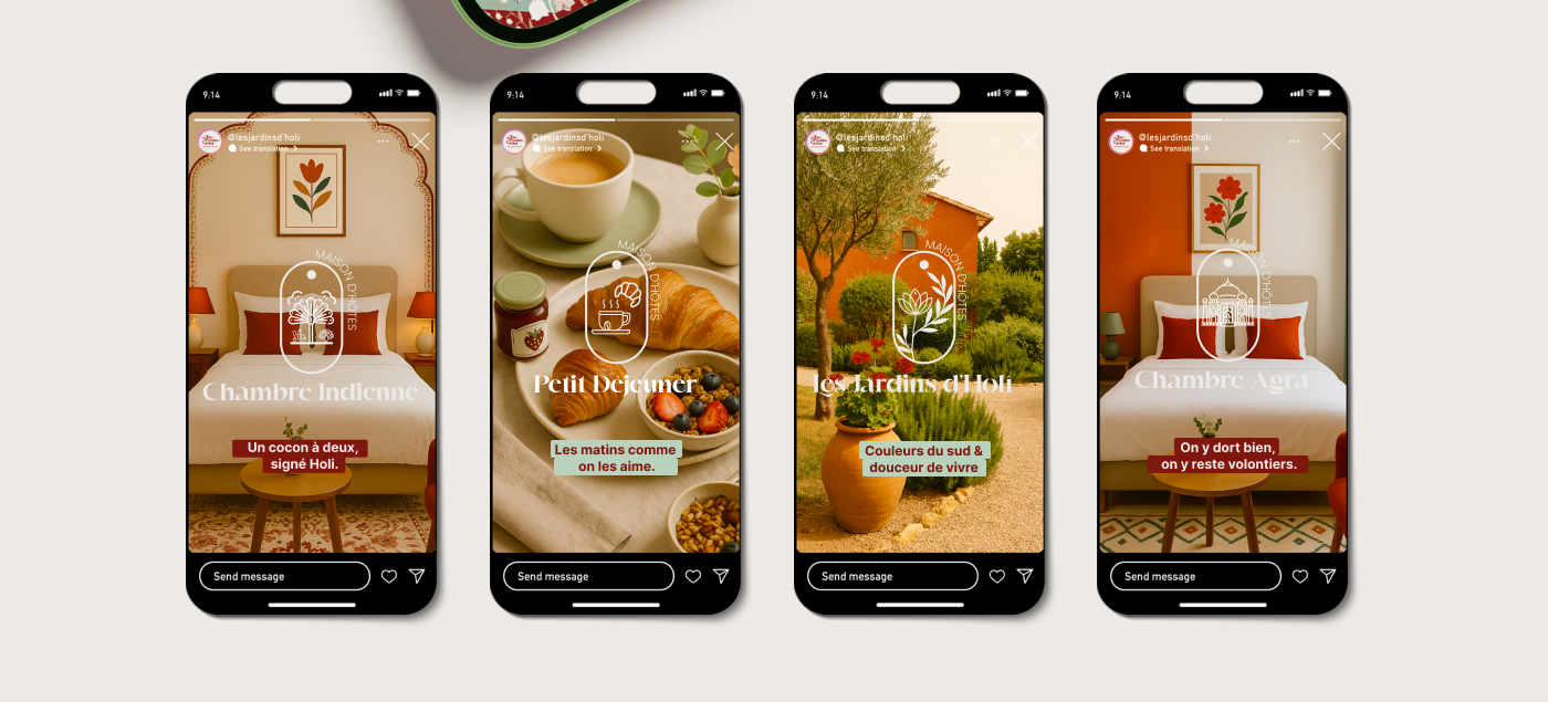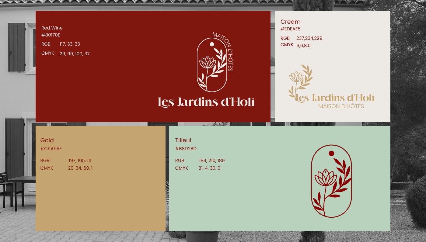 Les Jardins d’Holi, une maison d’hôtes souhaitait repenser son identité visuelle pour refléter une image plus contemporaine, poétique et alignée avec ses valeurs : l’expérience, la nature et la simplicité.